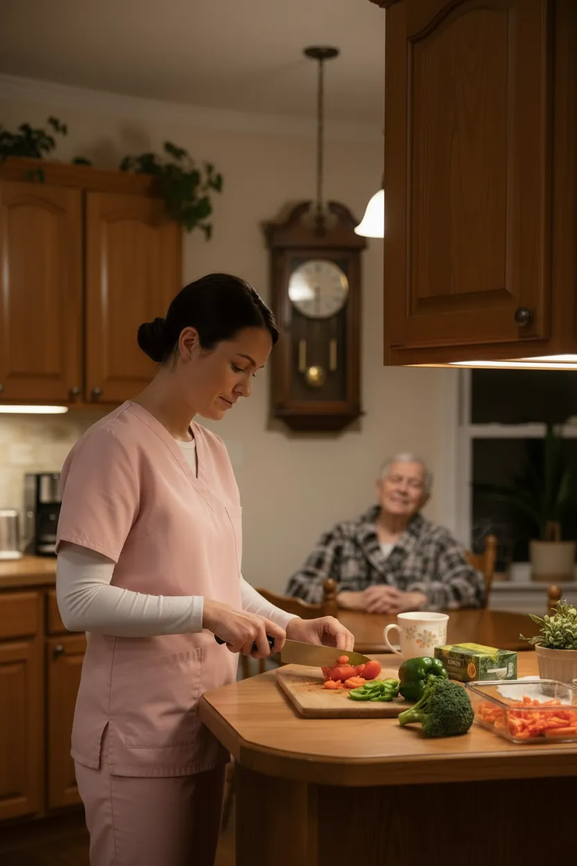 Meal Preparation & Nutrition Support helps seniors enjoy healthy, home-cooked meals tailored to their preferences and dietary needs. Our caregivers assist with planning, preparing, and serving meals while encouraging proper nutrition, hydration, and comfort at home.